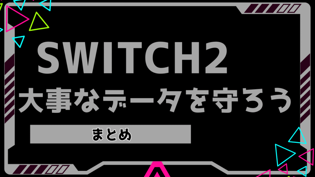 本記事では、SwitchからSwitch2へ安全にデータを移行するための方法をご紹介しました。